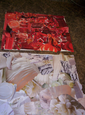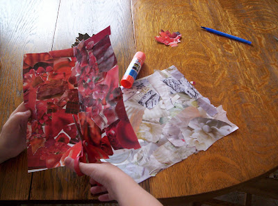 They glued them to two separate sheets of paper, to make white, and red collages.