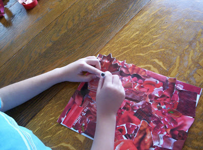 I gave the children a pile of magazines, and ask them to cut out all the red, and white pictures they could find.
