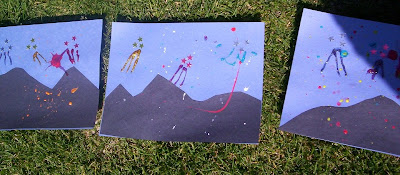 I love the mountains and the stars in the sky - very pretty background. I had such high hopes for our fireworks painting and was disappointed with the final product, but Collin thought the whole thing was fantastic so maybe I stress out WAY too much over things like this!