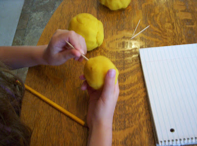 They were not to squeeze the play dough, or peek into the holes made by the toothpicks.