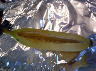 Wrap in tinfoil, and place on the hot coals of a campfire, until the chocolate melts, or in a 350 degree Fahrenheit oven, for 15 minutes.