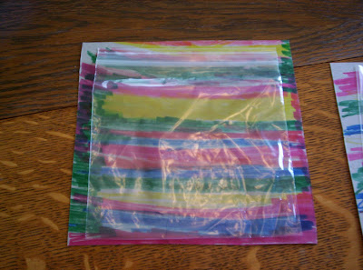 Finally, I taped the bags to the cardboard, and gave them to the children to "draw" on. Basically, you just rub your finger across it to make your drawings, and your whole hand to erase the drawing.
