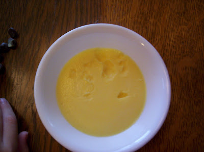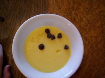 I gave the children each a bowl of smooth, vanilla, "moon", pudding, but I held back the spoons, to keep them from digging right in.