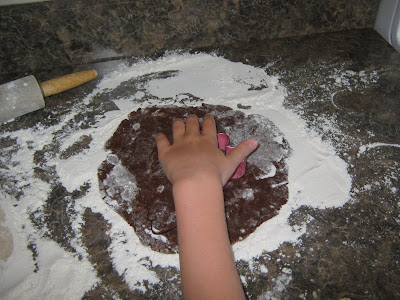 I helped them mix a batch of sugar cookie dough, adding cocoa to half the batch, and rolling it out, so they could cut two of each shape, out of the vanilla, and two out of the chocolate dough.