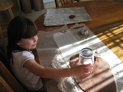 Anyway, I rolled the dough out, and the girls took turns cutting out circles, for the bodies...