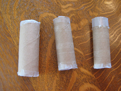We used three toilet paper tubes, and cut two of them lengthwise, then overlapped, and taped them back together...