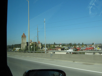 I have a few travel photos yet to share myself. Since, Debbie was so good as to show some of the interesting sights, and tastes of Spokane, on her last visit, I couldn't help but snap a couple shots as we zoomed through, on our trip. This is Spokane, WA, as we generally see it (I did pull off the highway once, when I was in high school, and traveling with a friend, for lunch at that McDonald's downtown, but other than that, this is it.)
