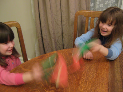 ...until their brothers pointed out they were missing wings. A fact, we quickly rectified, with another spot of glue, and a strip of green construction paper, trimmed, and folded to suggest dragon wings.