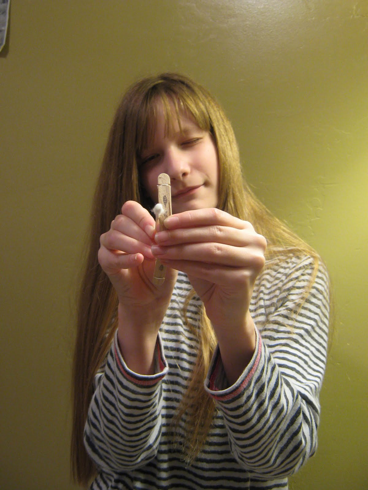 The Brooding Hen, offers an excellent step-by-step tutorial, for making them, so I won't repeat the steps here. But, if you want to make a few yourself, you'll need a sharp knife, or heavy duty pair of scissors, craft sticks, dental floss, and cotton swabs. They're pretty quick to make, once you've let the craft sticks soak, in water, for an hour, or so.