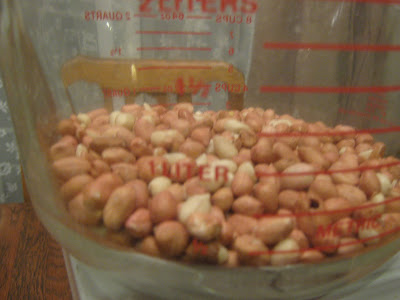 I showed the kids, that the recipe called for a pound of raw peanuts. Usually we buy our peanuts in bulk, but this year all the store had was prepackaged peanuts. So, I already knew each package was exactly one pound, but I didn't point that out to the children.