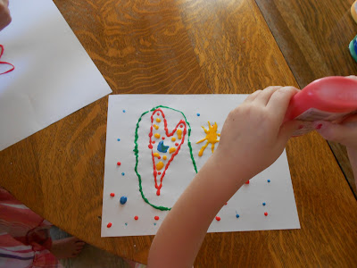 Do you know how much glue I have left over from last year still? I can't wait to make some of these up. I usually have the children mix paint into their glue in cups and apply with a brush, but this is great for strengthening those little fingers!