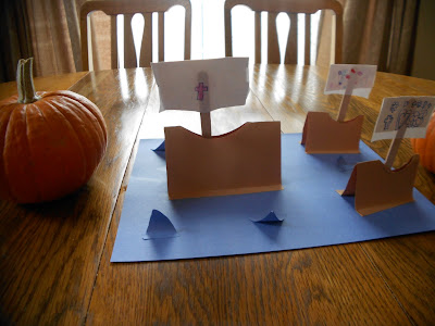 I worked a quick Columbus Day craft (from Evan-Moor's Teacher File Box) into the younger girls' math lesson today.
