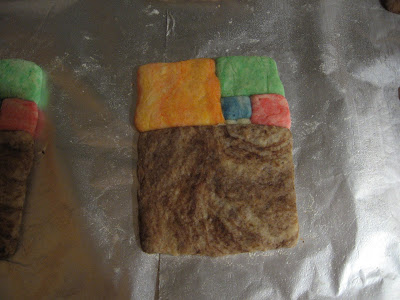 I cut the smallest piece into 12, 1x1 squares (using 1/2 cm as my unit of 1), and placed two squares side by side on the cookie sheet, for each of the six cookies a half batch of dough will make (click here for the recipe).