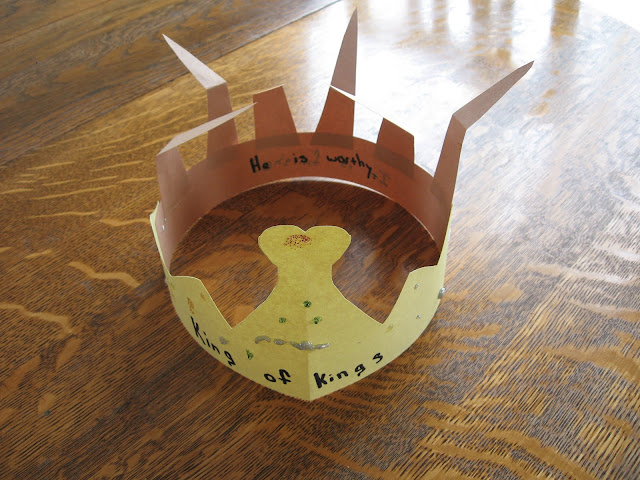 When they were done, I stapled the two sides together, into one crown, reminding us of Christ's suffering and glory.