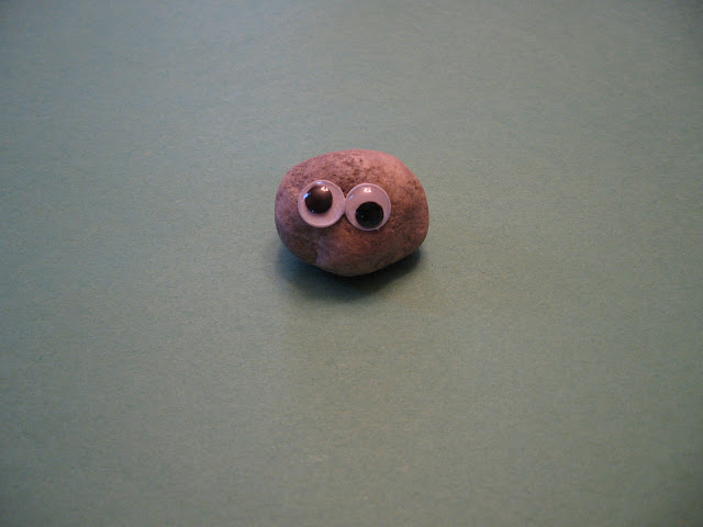 Each child gets to choose a small rock to glue eyes onto with school glue.