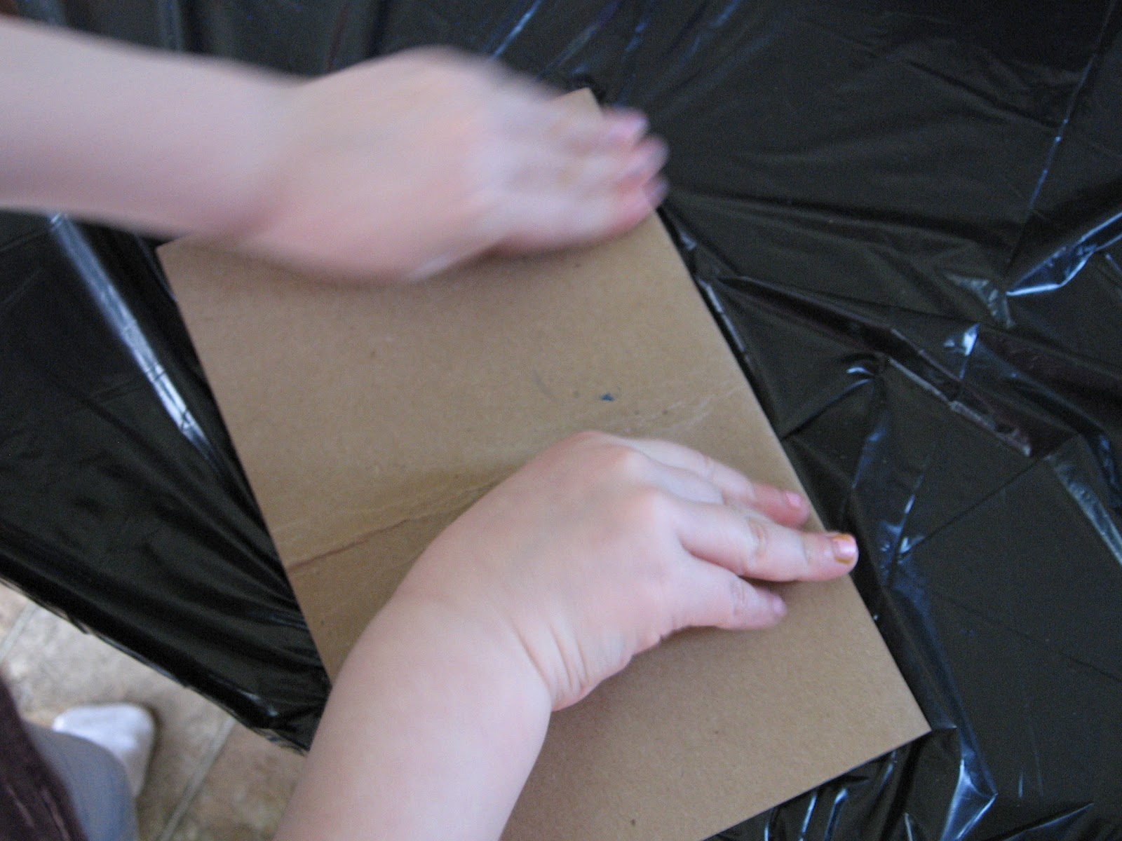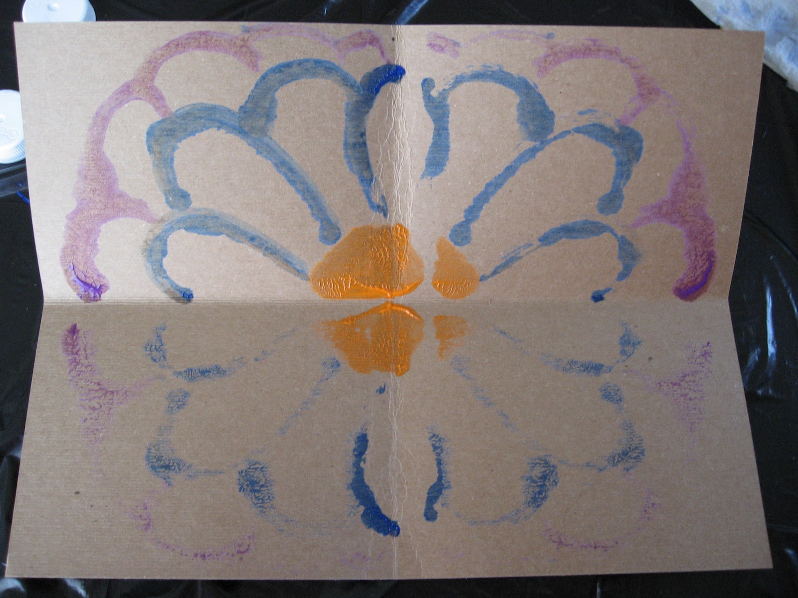 We didn't get the best prints, though we did discover that poster paint works better than acrylic, as acrylic paint dries too fast, and it's hard to get the paper folded in time, making for incomplete pictures...