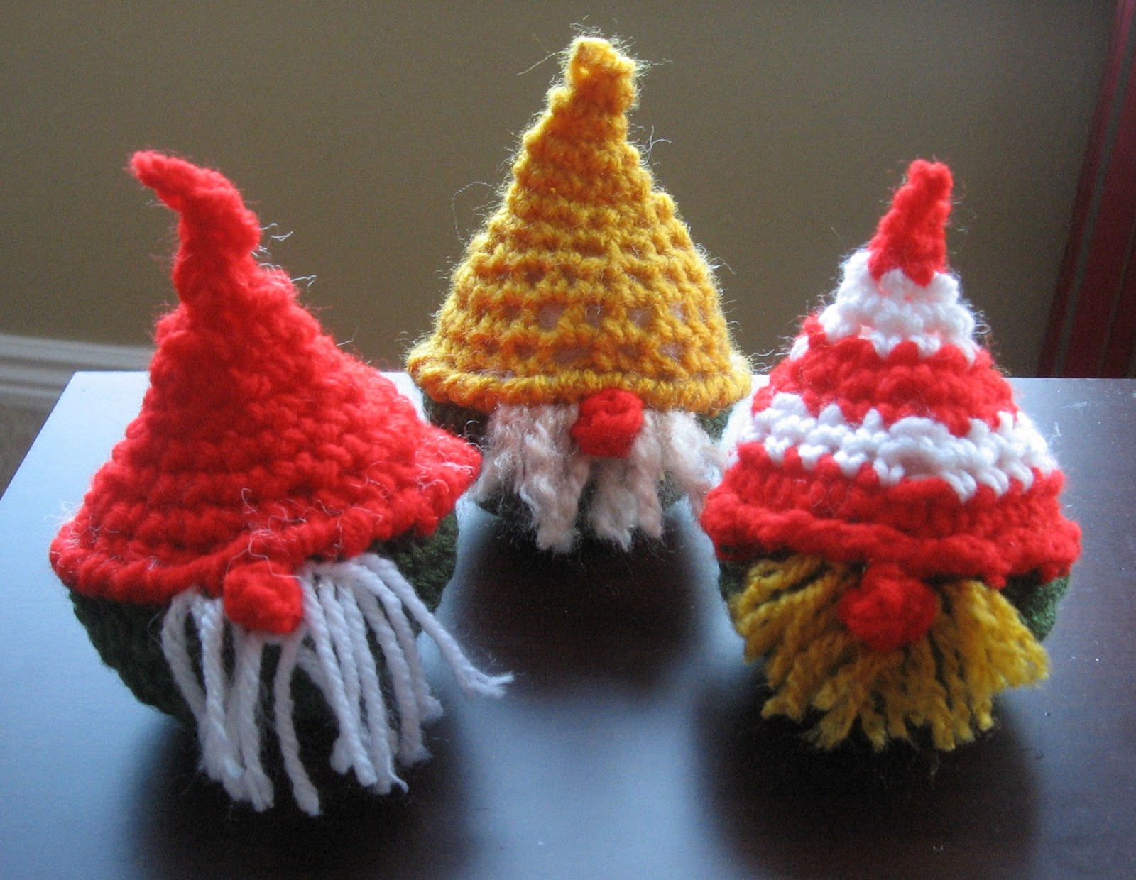 You can find the original owl pattern back a few posts by clicking here.  To make gnomes instead of owls: