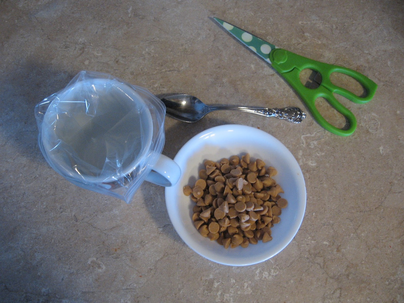 Clean out the cupboards, of course. And, in our house, that means finding some creative way to use up all the open, left-over holiday odds and ends, like for instance the open bag of peanut butter chips and partial bag of pretzels left from making pretzel stick stars for the preschool Sunday school class.