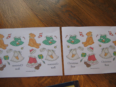 When, I checked out Kestutis Kasparavicius' The Bear Family's World Tour Christmas, from the library, it was because I thought it would be a Christmas-around-the-world sort of book. It turns out to be more about bears around the world, than about Christmas, as a bear family takes their house, attached to a hot air balloon, and travels the world to help all of their relatives, in distant lands decorate for Christmas.In keeping with the book, I found a Christmas bear, paper doll print-out, here (the Internet can be a mother's best friend). I printed two copies as 5"x7" prints, then flipped the picture, and printed them again, so each of the younger girls, could have two bears, that sit facing each other. While their older sisters went to work helping to cut them out, the younger girls made houses for them to decorate for Christmas.
